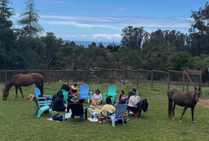 Gather in peaceful company as the sun sets. Notice how the horses respond to the shifting light and cooling evening breeze. Watch as the chickens wander back to roost for the night. This reflective circle welcomes open conversation ...