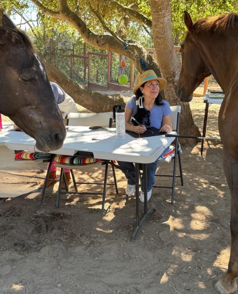 Horses live in the present moment—and being with them invites us to do the same. Creating art in their company deepens our sense of calm, clarity, and connection. Their nonjudgmental presence helps quiet the inner critic and open space for creativity and self-trust.